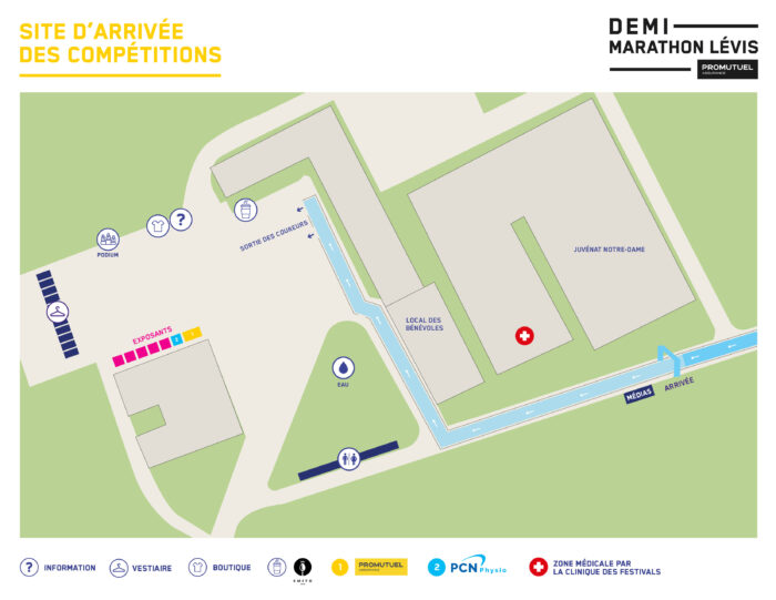 The finish line is on the grounds of the Juvénat Notre-Dame school in Saint-Romuald. The finish line is the same for all races.